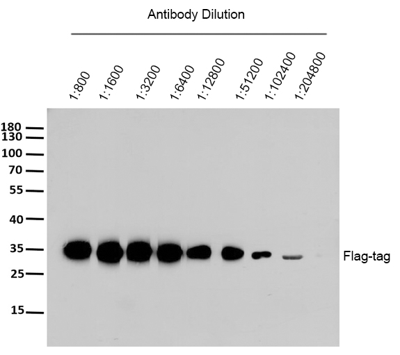 ![]() | Western Blot analysis of flag-tag protein using primary antibody at various dilution. Secondary antibody was diluted at 1:10000 |